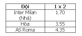 Ví dụ: Trận Inter Milan (Đội Nhà) vs. AS Roma (Đội Khách)